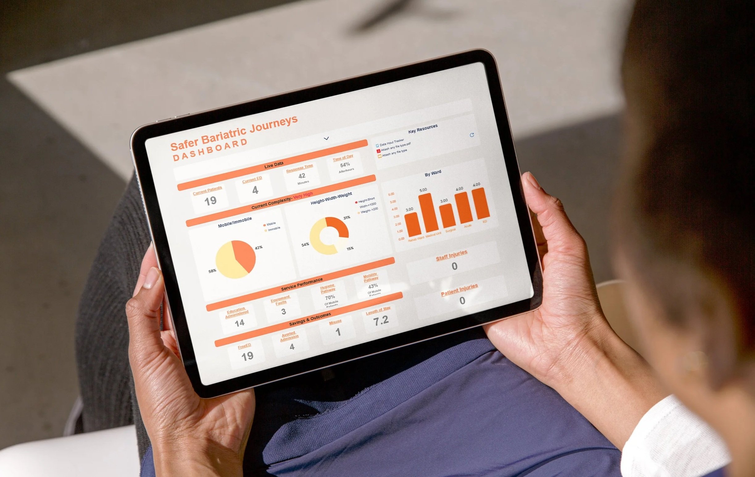Our digital insight tools are designed to provide you with a real-time view over the patient journey, empowering teams to move from reactive to proactive care, informing key decision-making, and optimising costs, efficiencies and safety in bariatric care.